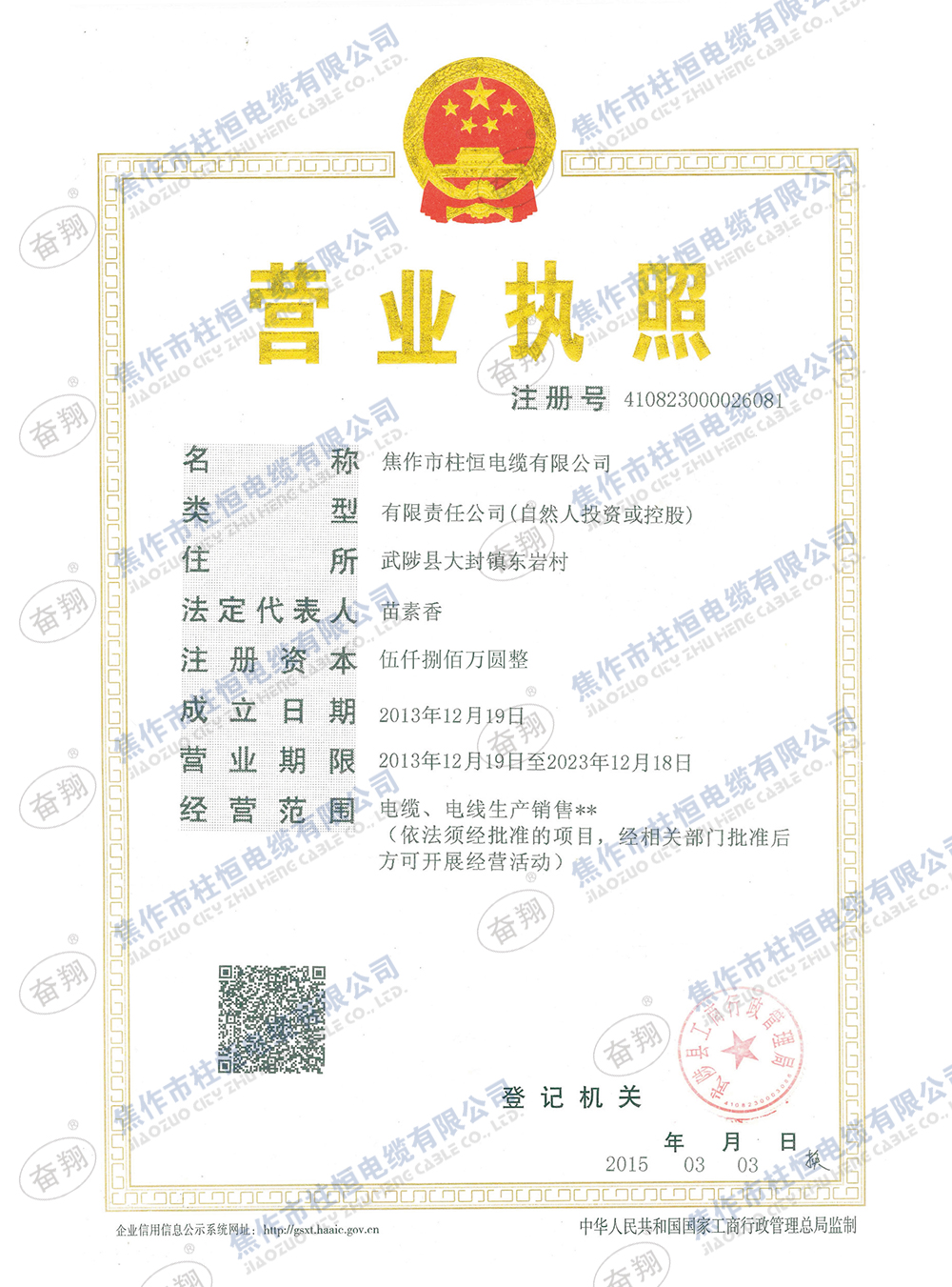 河南焦作市柱恒電纜有限公司創(chuàng)建于2013年,是以電線(xiàn)電纜、電纜附件、電力電器加工銷(xiāo)售為一體的大型股份制企業(yè)。